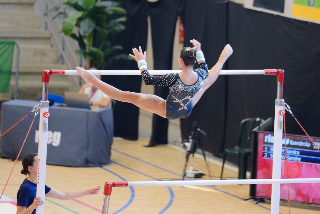 Las barras asimétricas fueron un verdadero reto para las gimnastas, que tuvieron que combinar fuerza, coordinación y elegancia en cada transición. El oro fue para Celia Lacal (Gym-Val), con 11,150 puntos, gracias a un ejercicio sólido y muy bien enlazado.